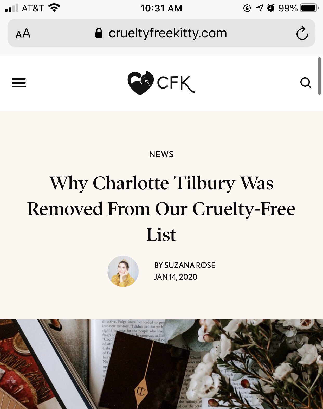 Charlotte Tilbury no longer cruelty free not really new but officially confirmed by cruelty free kitty News. Cruelty-Free Kitty 474 followers on LinkedIn.